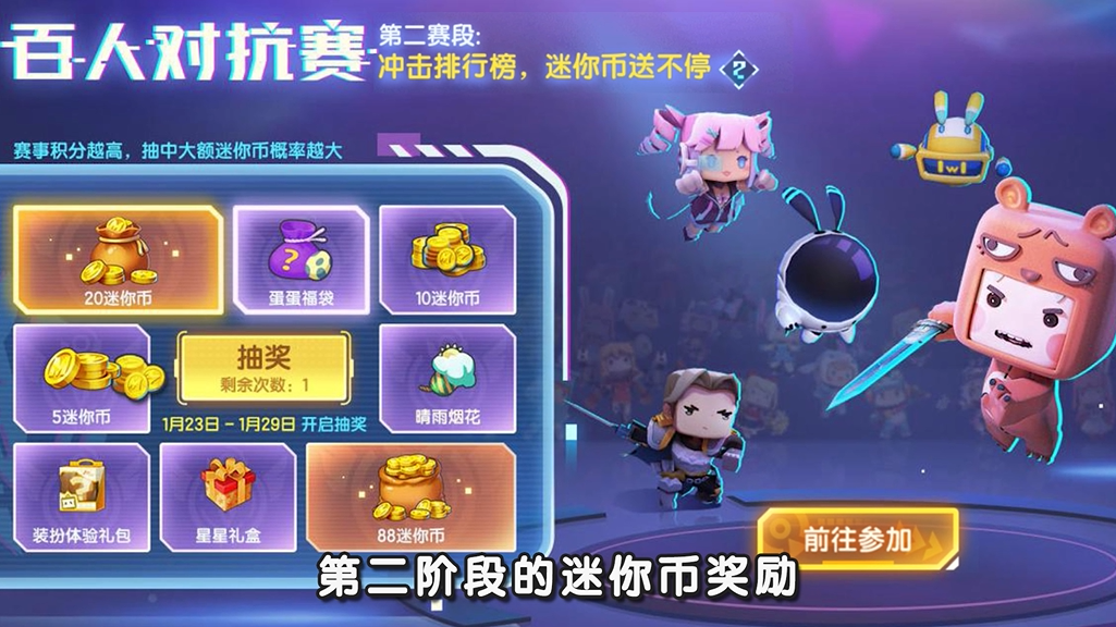 迷你凹凸大赛百人对抗赛第二阶段的迷你币奖励是固定排名奖励。