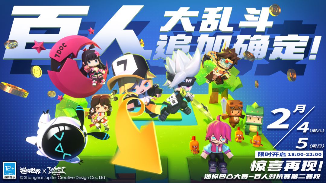 迷你凹凸大赛百人对抗赛第二阶段将在2月4日~5日晚上6:00~10:00展开,想要参与的小伙伴们要记住,千万不要错过啦~
