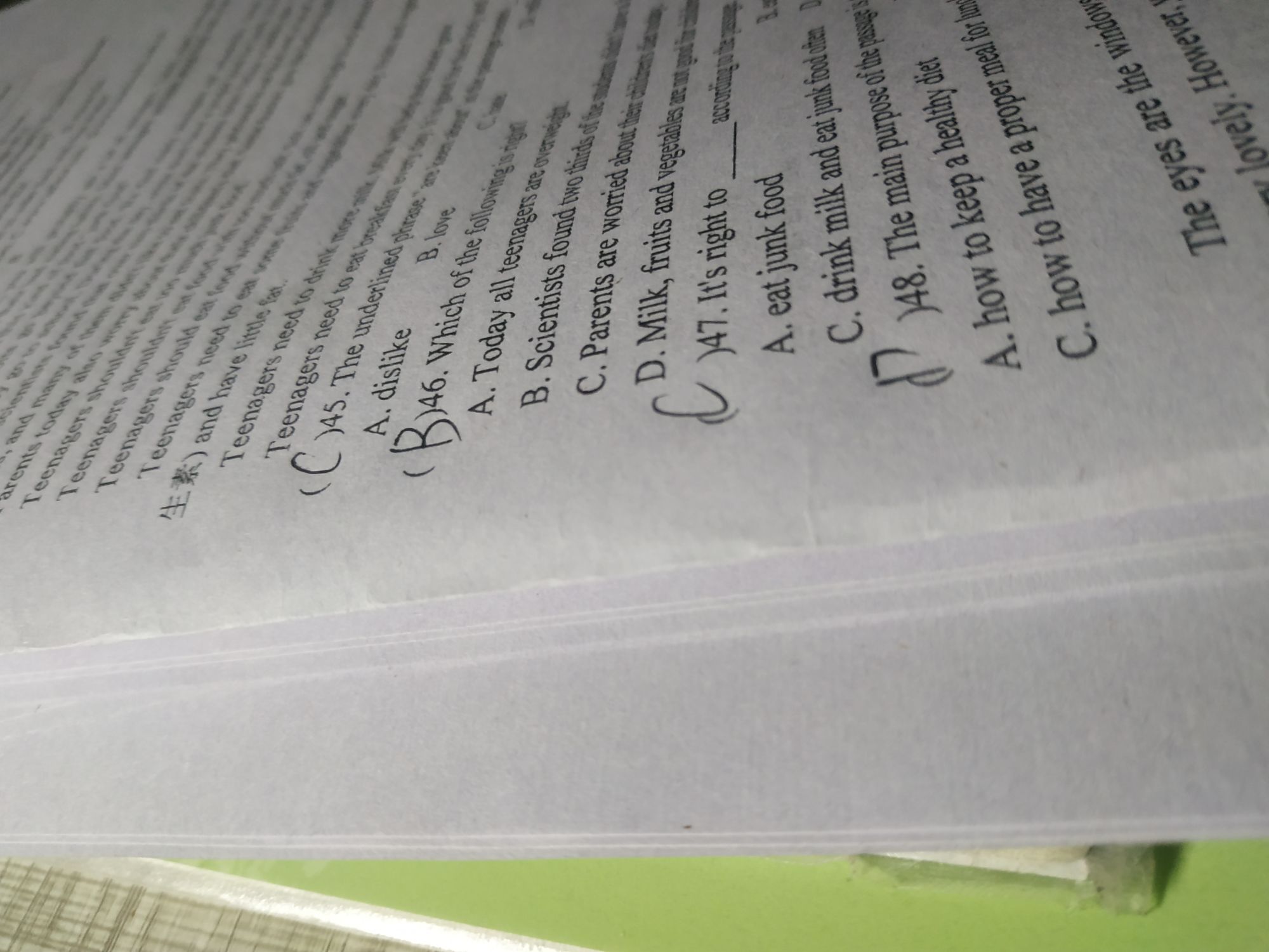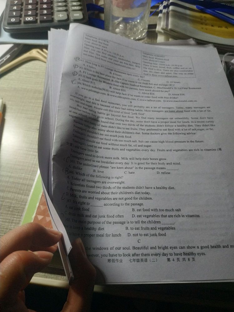 就发了两张卷子,他就跟我说违反不理解