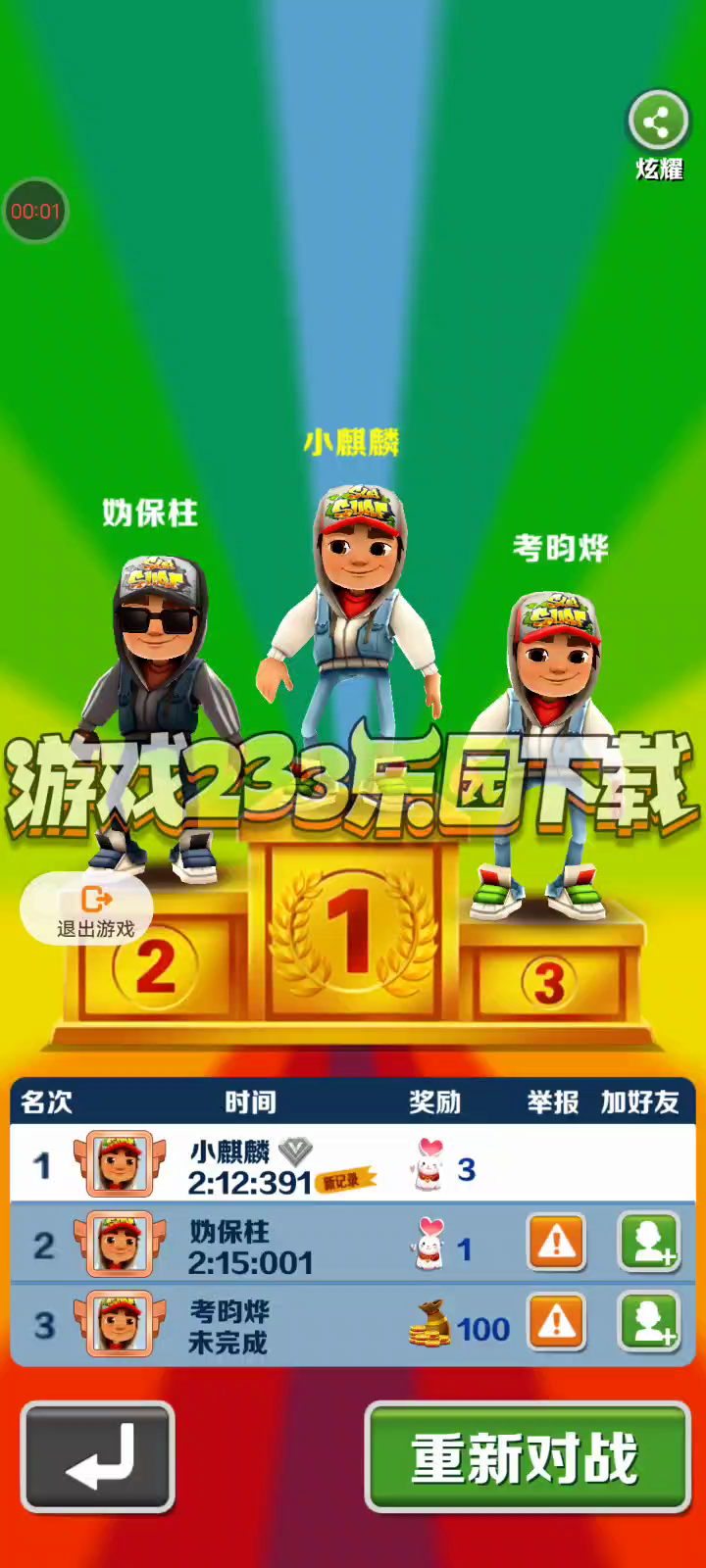 平时玩的都很好,不知道这次怎么了,得了个第二。😑😞