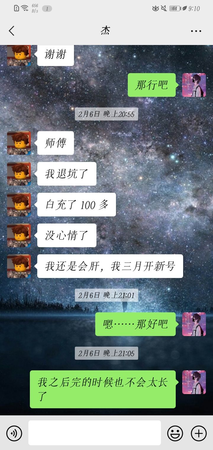 明天元旦假期结束了,以后可能也不会常上线了,说实话,乐堂这游戏挺无聊的的,也挺坑的,这是我徒弟,一不小心删了,就全没了……玩游戏呢,其实不用太氪,开心就好,适可而止。我们也曾相信过光,可这款游戏好像告诉我的确是金钱就是光,钱代表一切,但你用钱换来的永远都是虚拟的,确实曾后悔过玩这游戏,浪废了我好多时间,当然,以上纯属个人观点,不喜勿喷