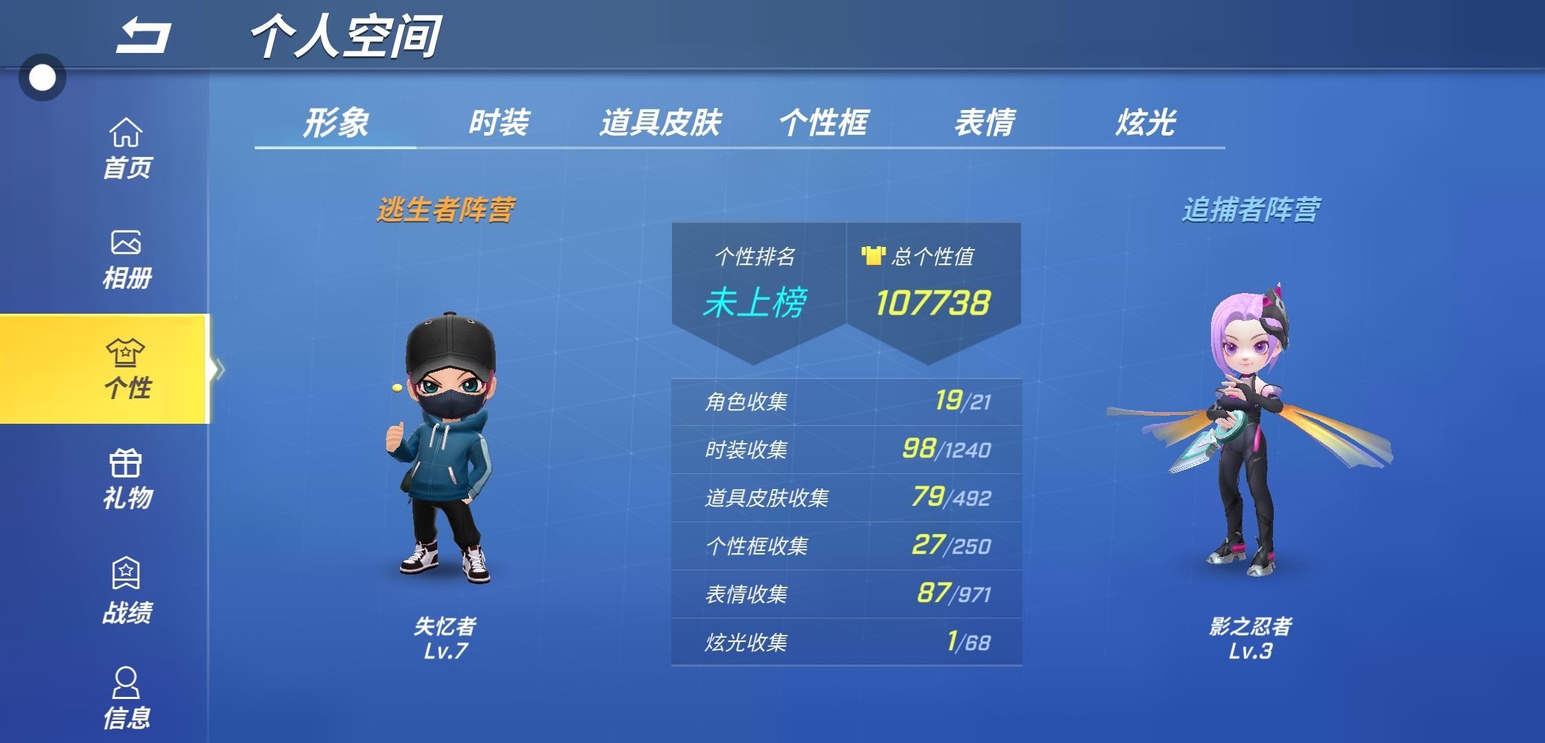 我玩了这么久,终于收集了这么多角色和道具皮肤了,也终于上王者了
