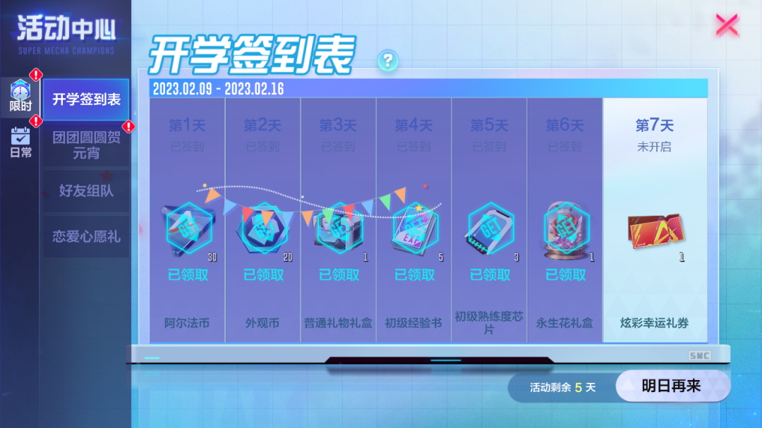 每日组队完成一局游戏,累积天数领取奖励,炫彩礼券典藏礼券等你来拿!活动期间,组队可享受联赛积分、亲密度加成!