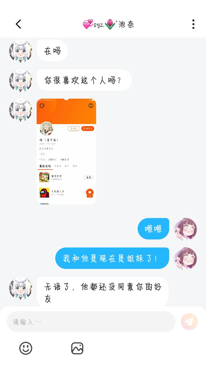 我.......只是想做他姐妹,为什么要这么说?他确实没同意我的好友