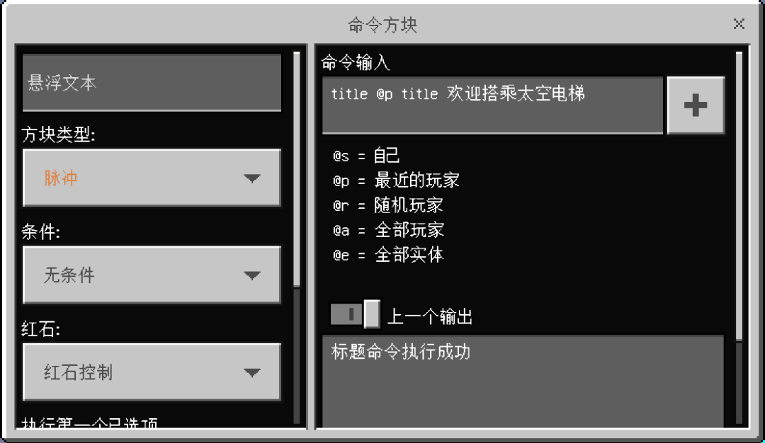 输入title @p title 欢迎搭乘太空电梯