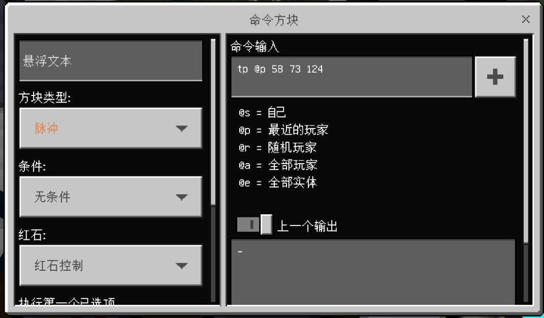 在第二层四个命令方块中