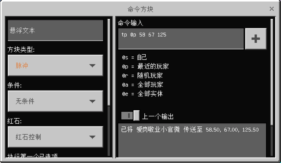 确定其命令方块坐标(x2,y2,z2)后