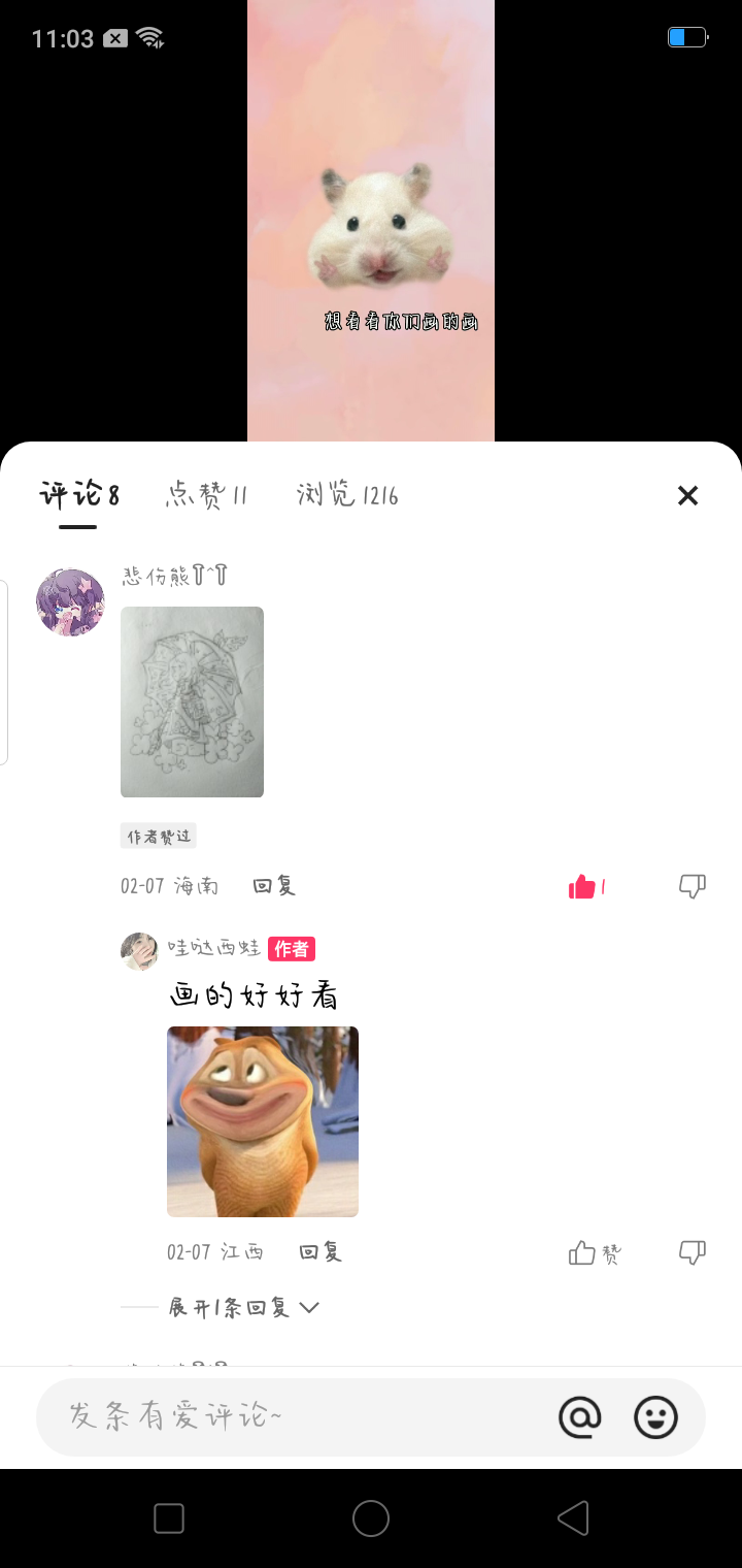 哇!我的评论区有一个太太唉😍,我也想看看你们画的画,快来炸我的评论区吧,快手号放评论区里了