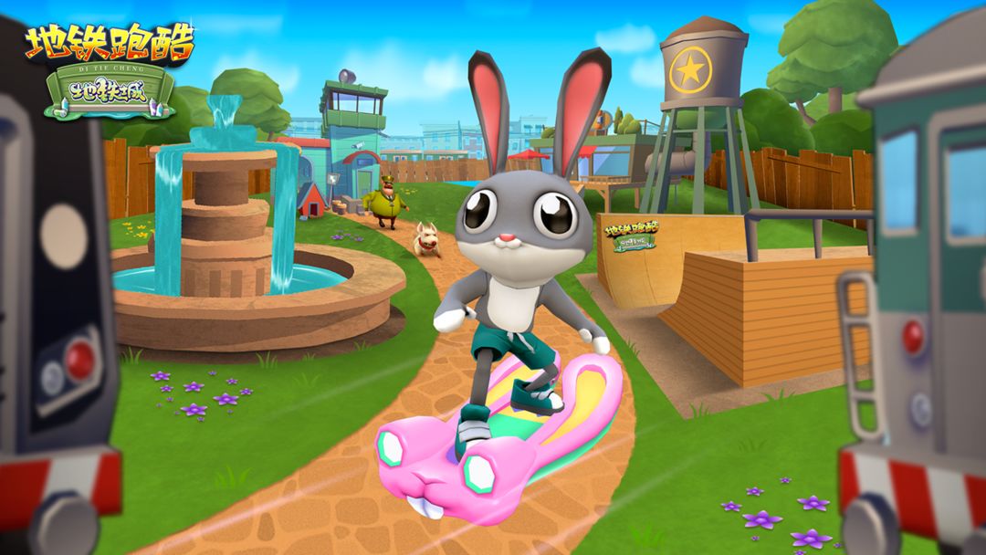 可爱的兔兔跑者乔治带着滑板兔兔气垫船来到了地铁城