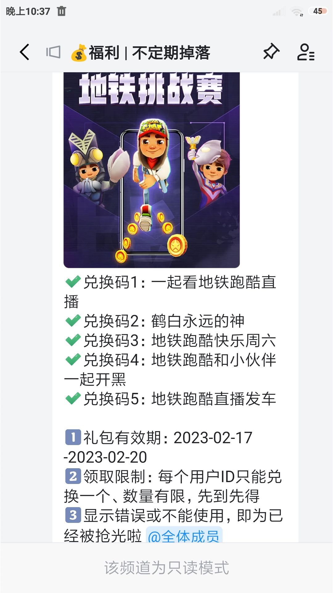 地铁跑酷最新兑换码!