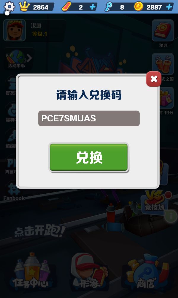 我的兑换码只有我用过了,你们可以试一下,这是我在233乐园里的地铁跑酷兑换码,我还有一个地铁跑酷的号你们自己看着办吧