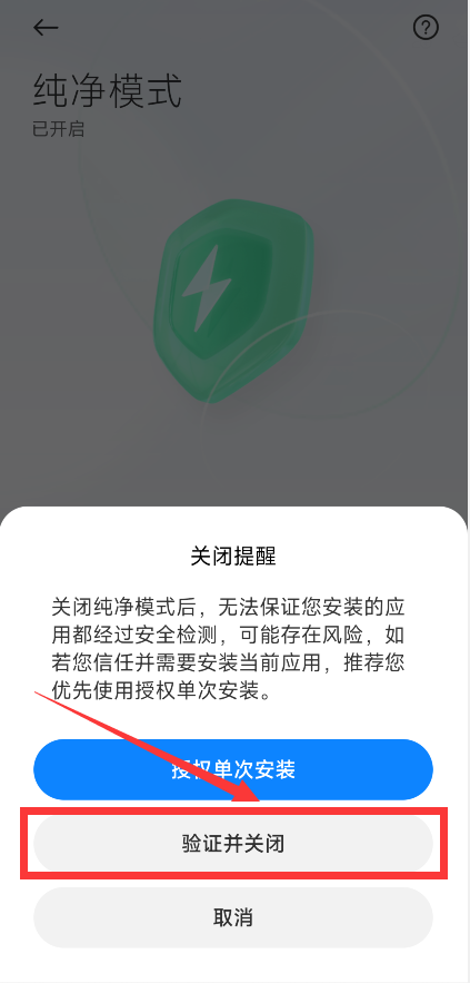 那么遇到这种情况该如何关闭可以按照以下方法进行操作: 在安装时会提示【检测到未知应用】的游戏-点击右上角的【设置】按钮-【安全守护】-点击右上角【设置】按钮-【关闭安全守护】中选择验证并关闭,输入小米账号密码即可关闭纯净模式。