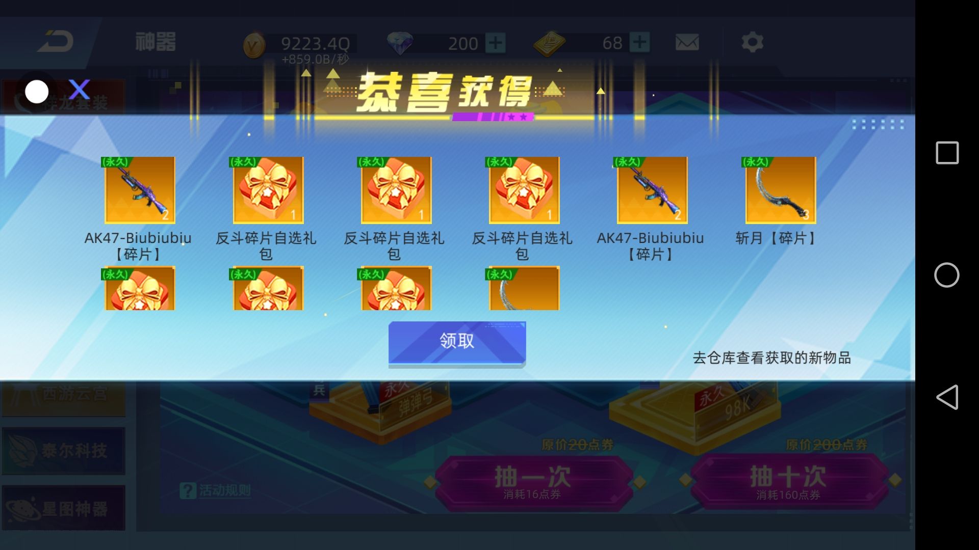 抽武装战姬,没抽中,呜呜呜~