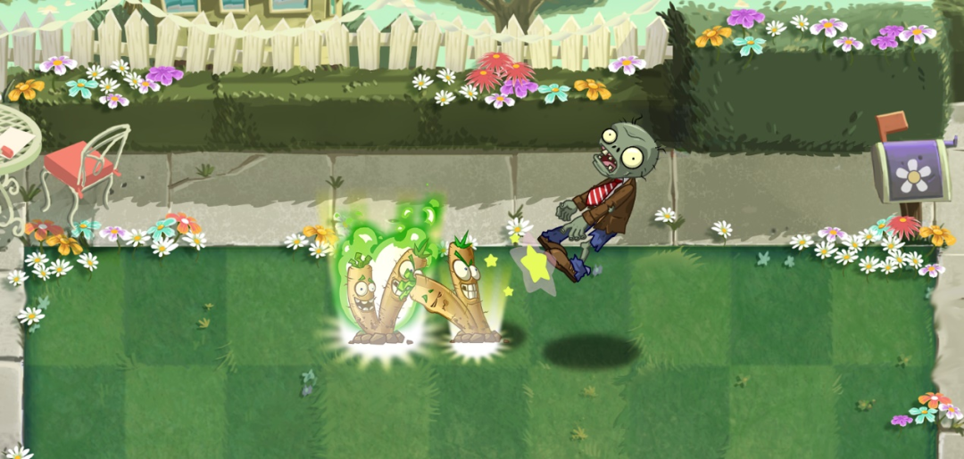 特别说明:牛蒡击球手的近战或击球效果都存在攻击间隔,每轮击球只会击中击球范围内的豌豆,并非对所有经过的豌豆类子弹生效。