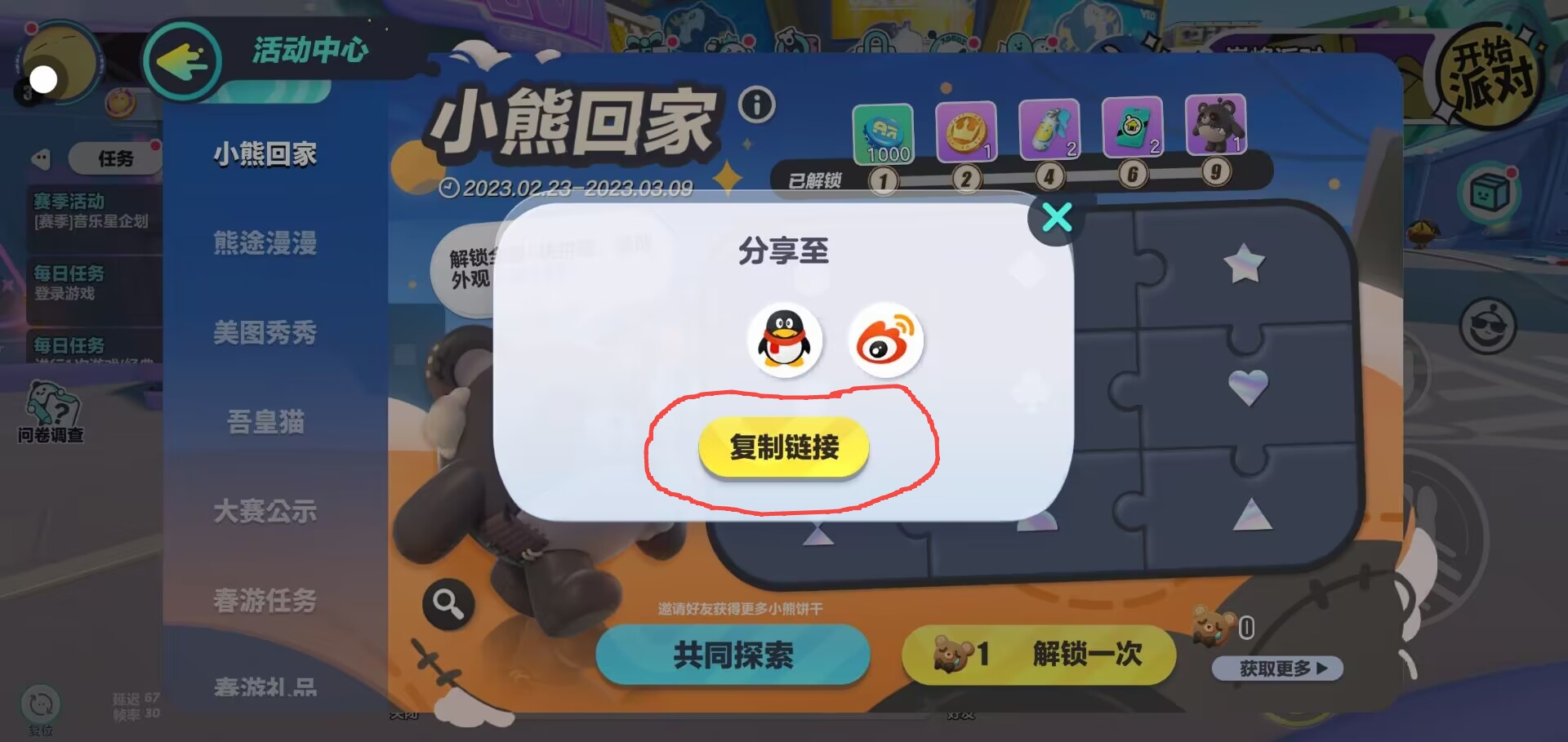 失心熊的分享助力活动终于有别的方式可以助力啦!!现在大家可以通过复制链接的方式分享给小伙伴了,还没有领取到失心熊的仔仔们快冲!!