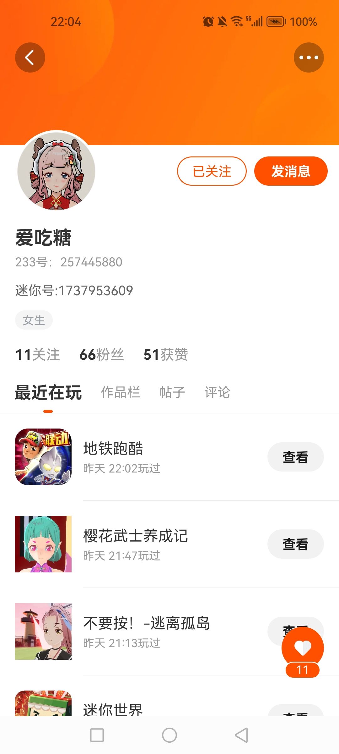 我大号的好友太少了,有谁加我好友吗?有的话在下方告诉我跑号。