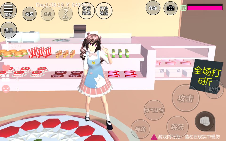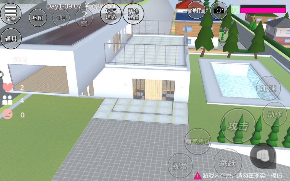 今天玩樱校发现了这个房子,里面什么也没有,可以自己装修。