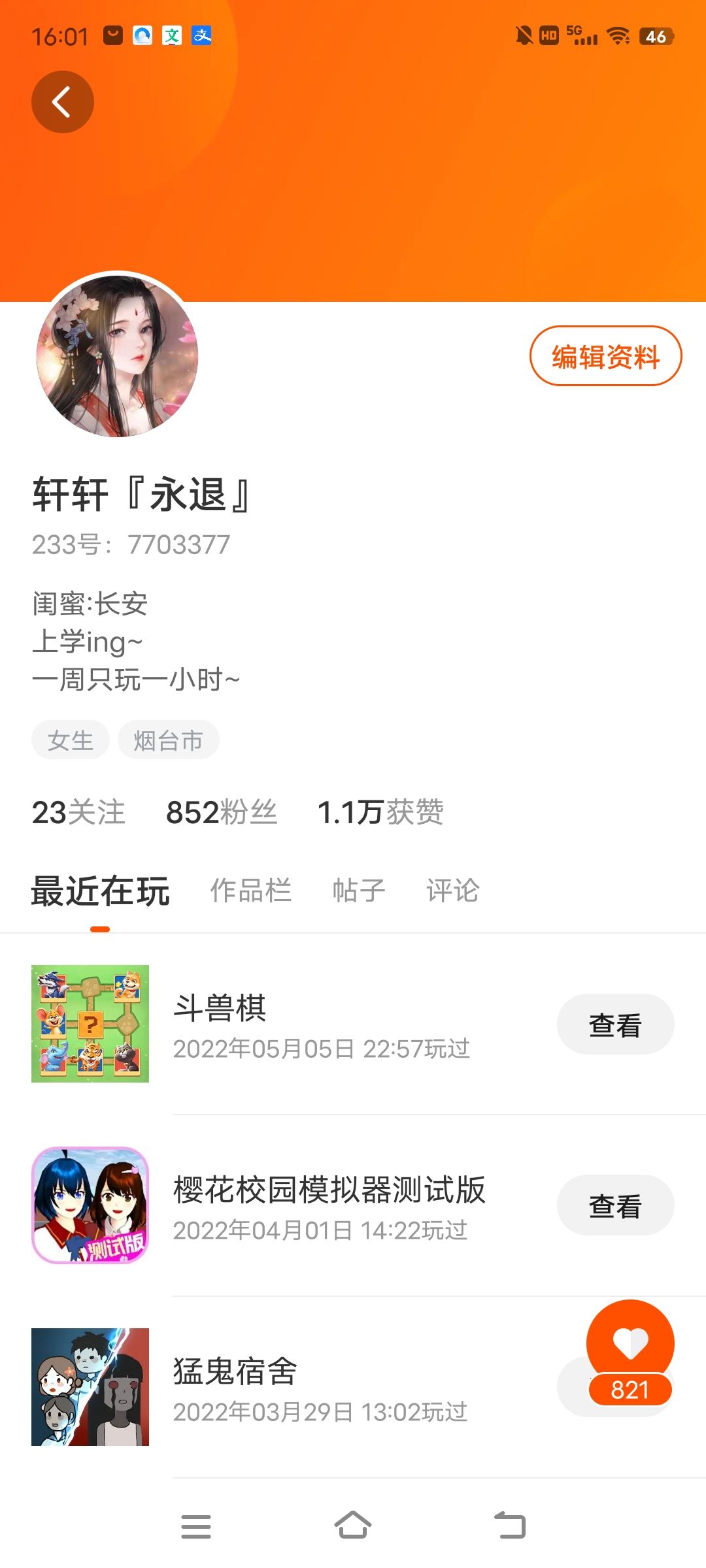 重新认识一下吧,我叫轩轩,于2021进人游戏圈,退了两年,回来啦😃