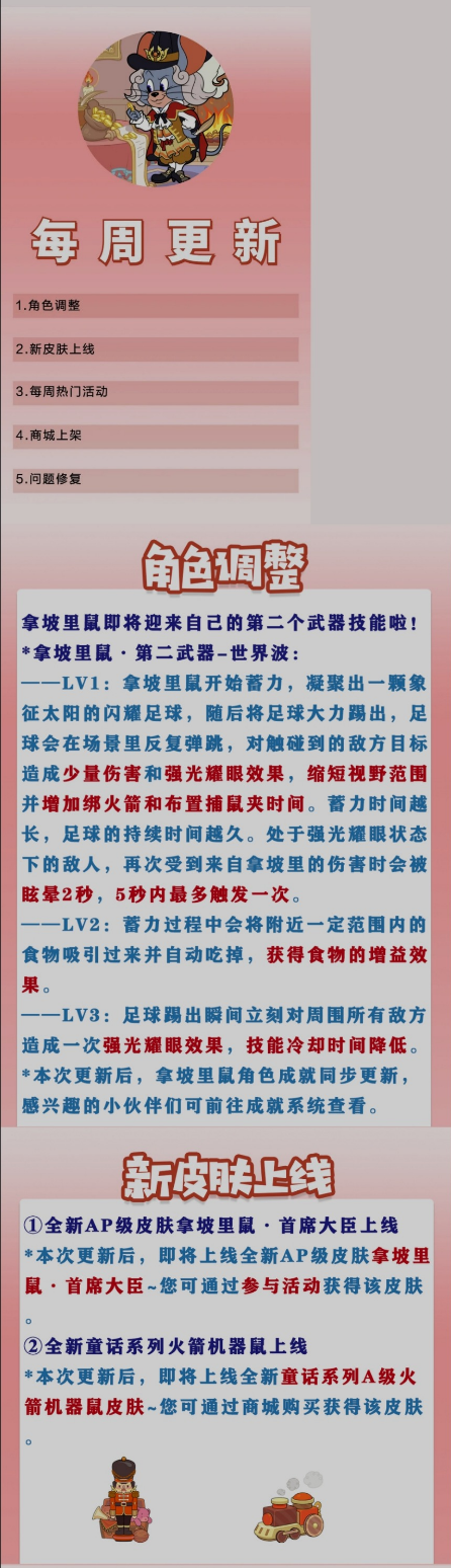 *本次更新后,即将上线全新AP级皮肤拿坡里鼠·首席大臣~您可通过参与活动获得该皮肤。