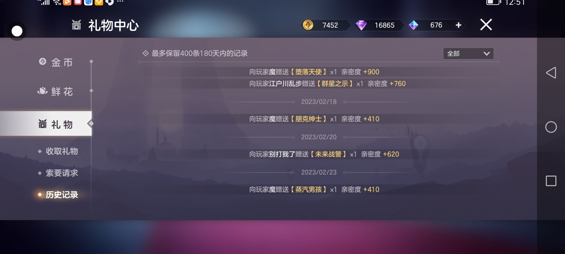 秀一下皮肤好吧,而且再秀一下送别人皮肤的记录