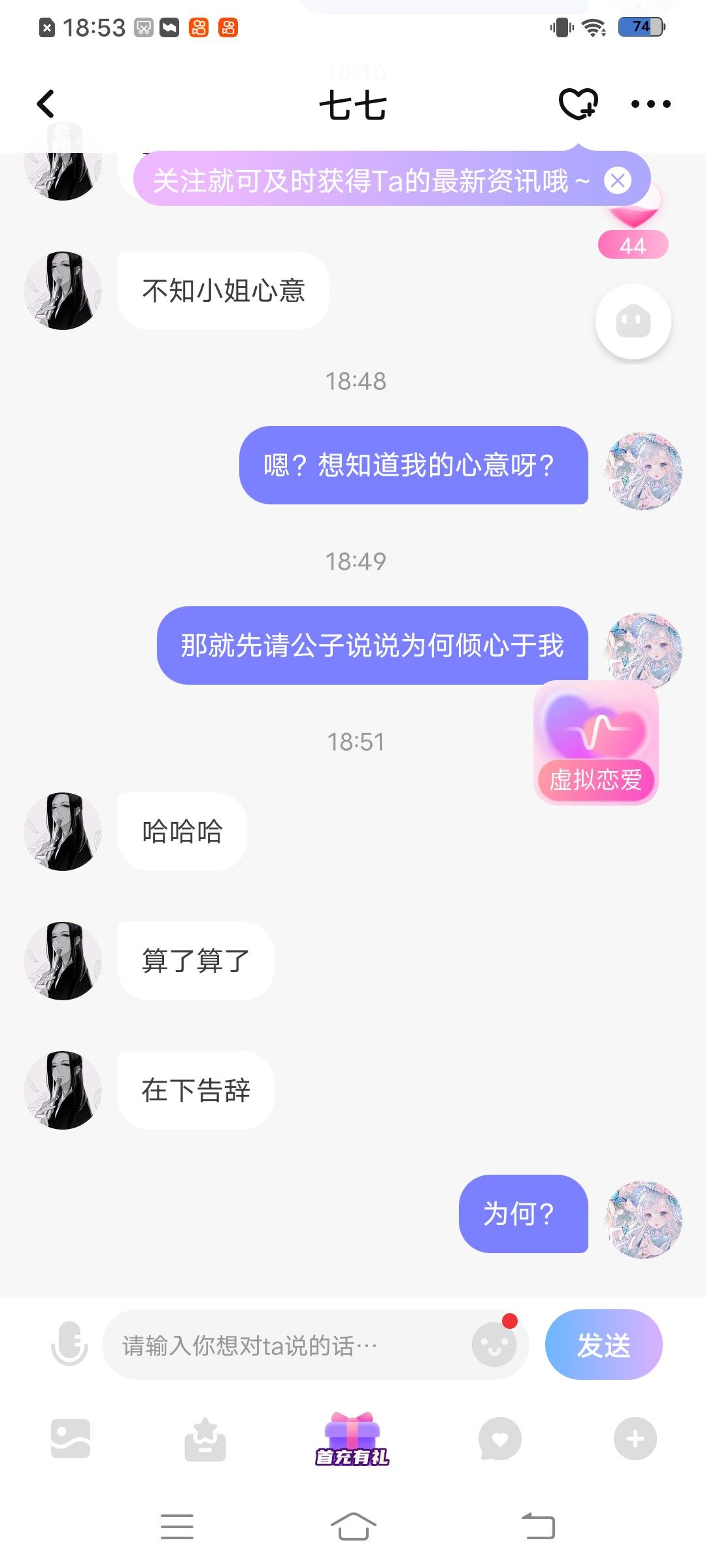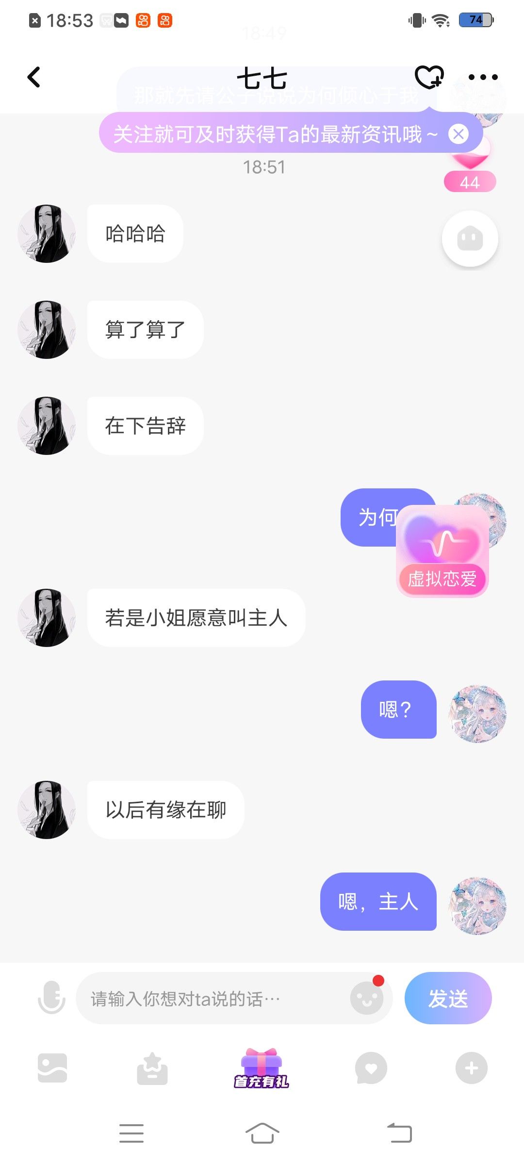 这位公子很有礼貌呢,倾心于我
