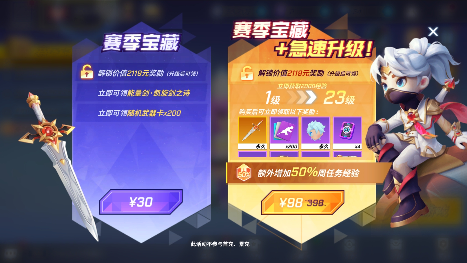 本赛季宝藏还有超过2W点券、随机武器道具卡碎片、耀金卡包等奖励哦~