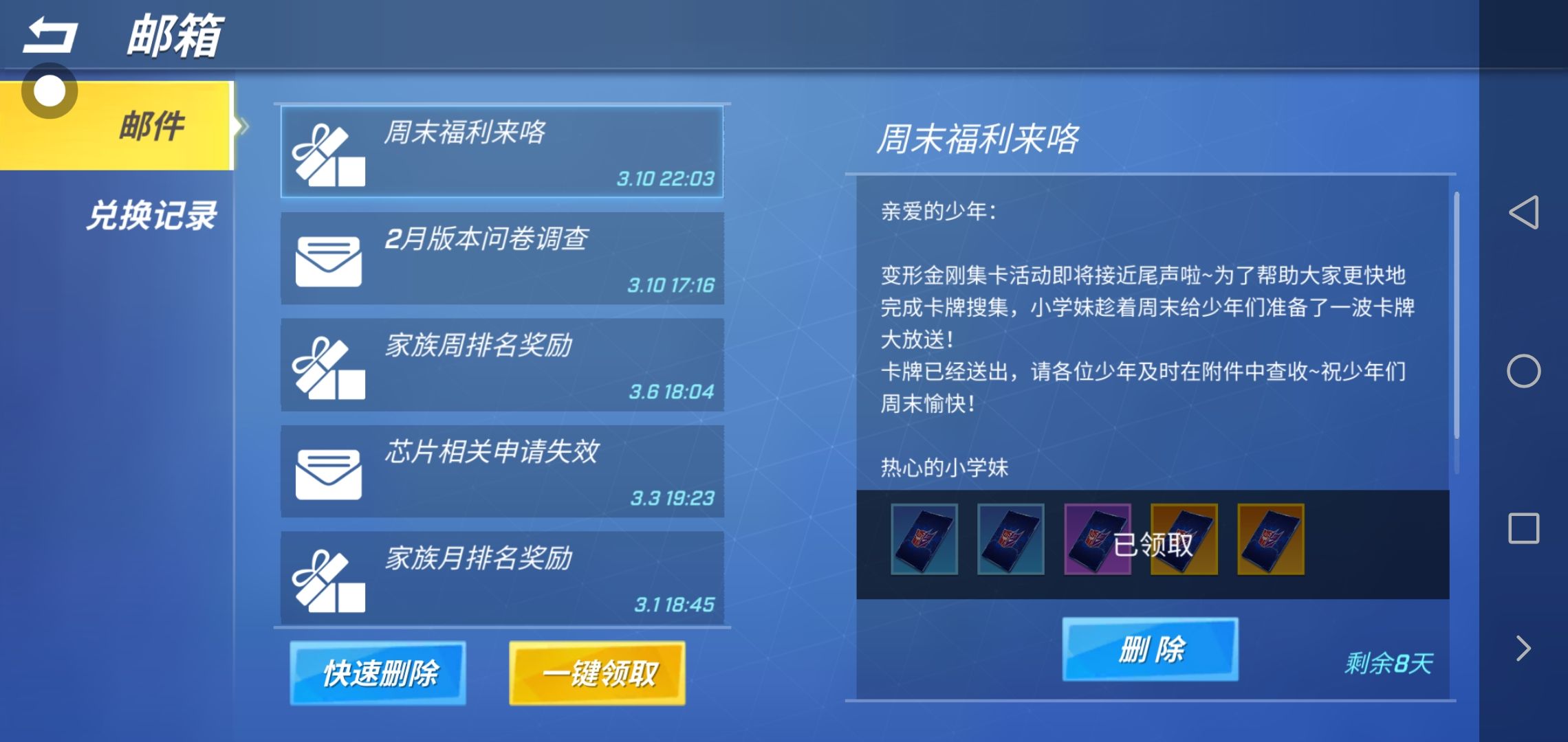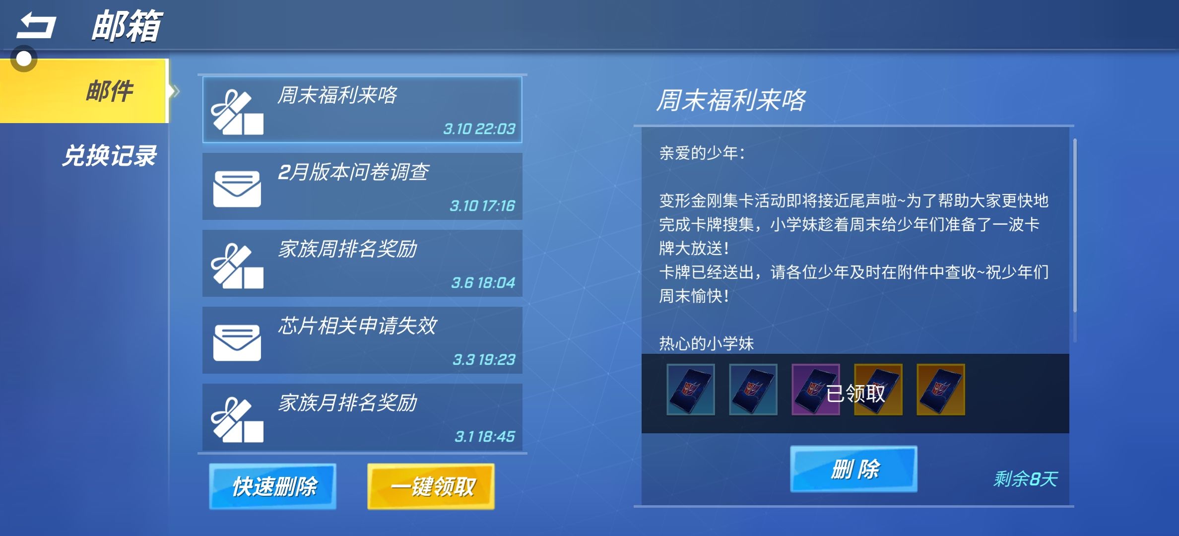 不就是领那些卡吗?为什么我没领到?官方,你能出来解释一下吗?