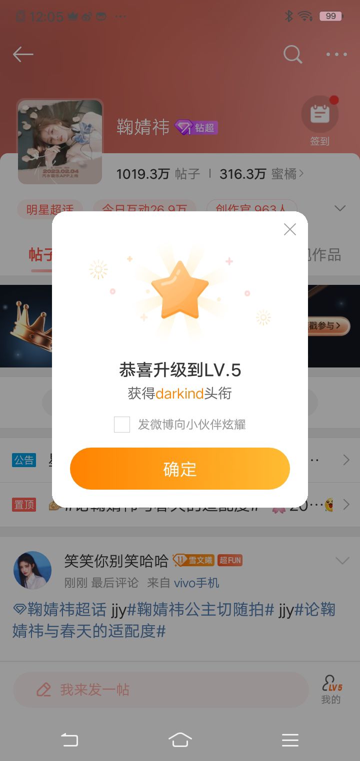 超话五级了