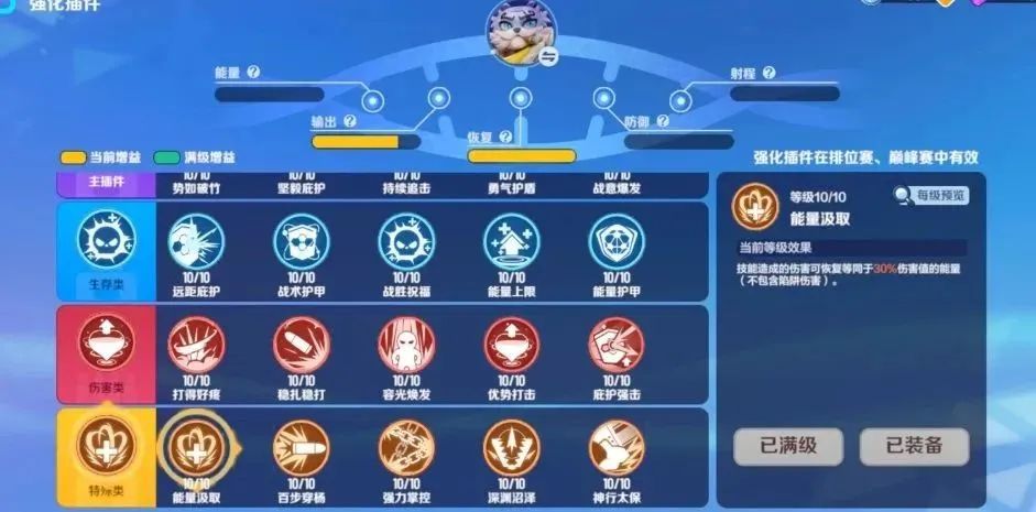 插件配置:坚毅庇护、能量护甲、庇护强击、能量汲取。