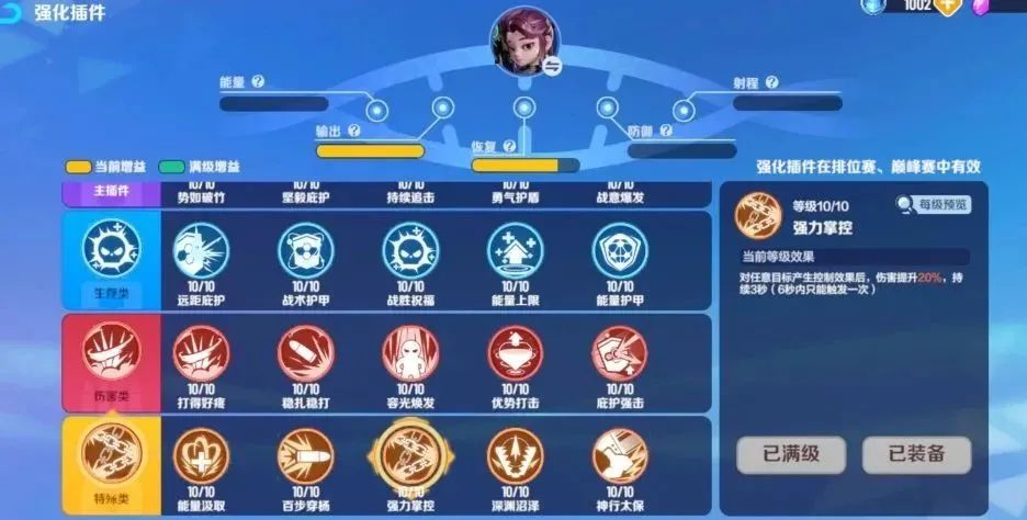 插件配置:势如破竹、远距庇护、稳扎稳打、强力掌控。