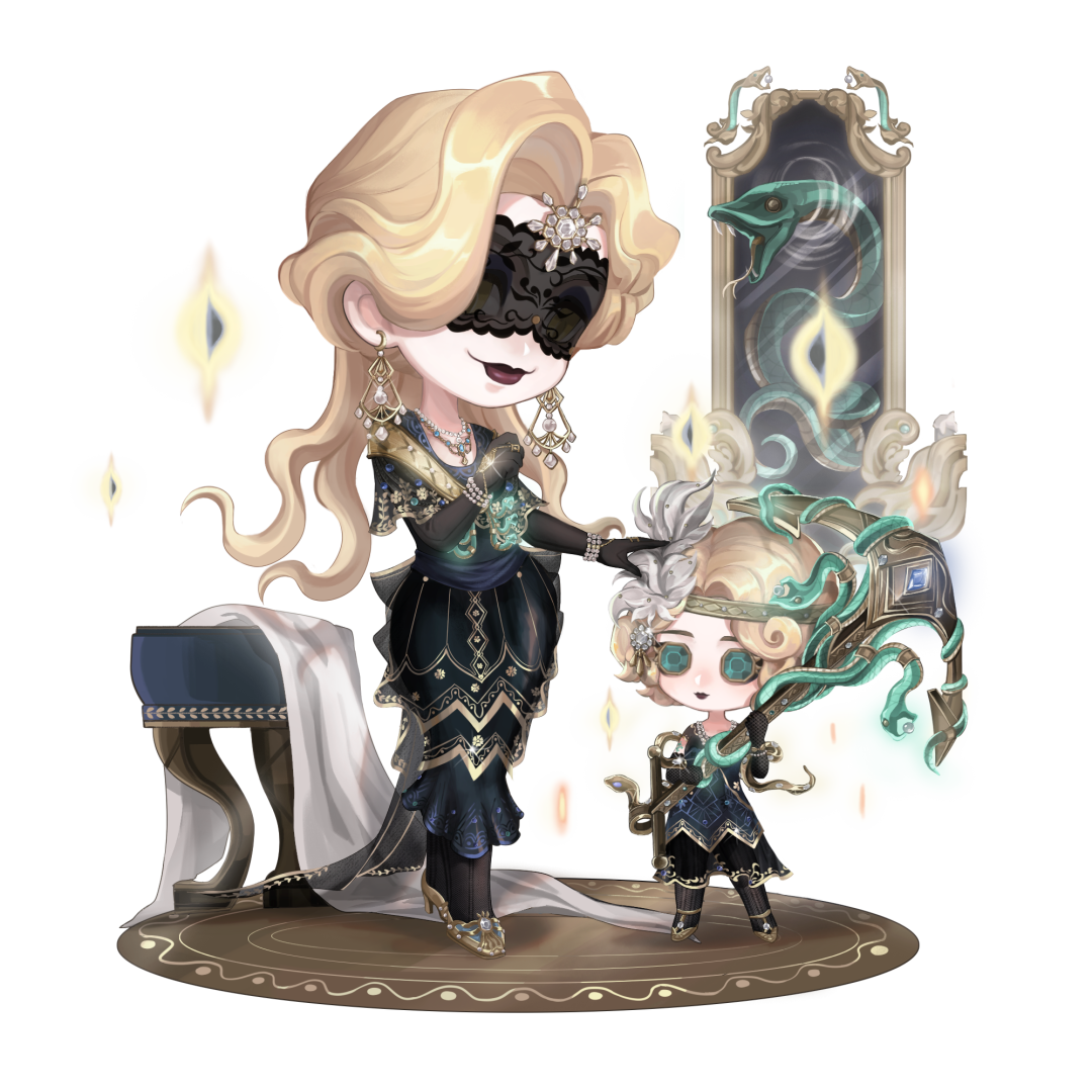 鎏金般的长卷发,闪烁着流光的耳饰,信使为这场宴会下足了功夫。而黑色蕾丝眼罩下的眼眸,会为在场的每个人带来噩兆。