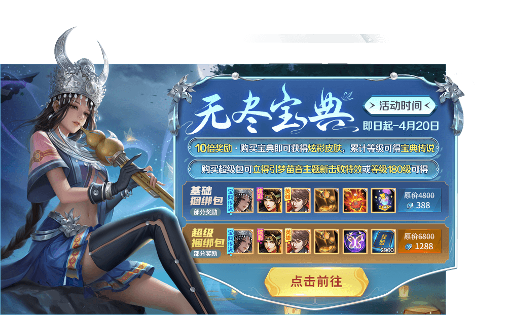 3月24日-4月20日,无尽宝典活动开启!只需388点券即可获得10倍超值返利!本期宝典还可以获得以下的奖励!跟着宫本一起看看叭~