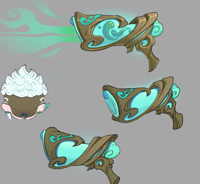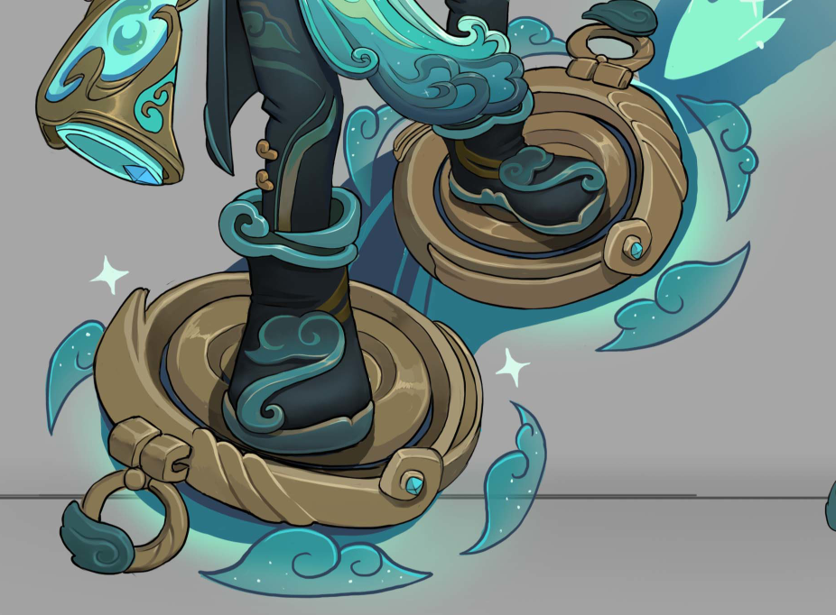 明子言的滑板重新经过设计,贴合岁星,整体形状颜色较为古朴,周围悬浮祥云。