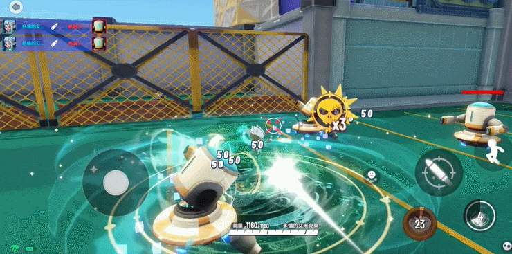 明子言利用木星之力向前射击,周围还可看到绿色的光点飘逸在空中