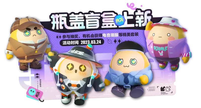 活动内容:新一季的瓶盖盲盒外观上新啦!想要穿上电音潮服成为潮酷歌手、换上安保套装守护蛋仔岛,还是一身侦探套装化身明察秋毫的名侦探呢?更多精美外观,等着蛋仔们前来收集!