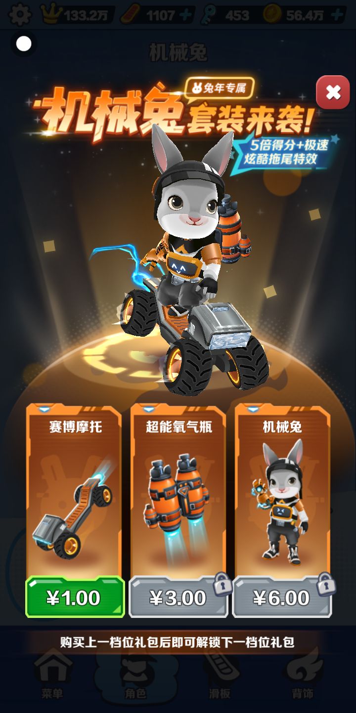 我心爱的机械兔和他的赛博滑板和背饰,居然要钱,我还以为通过超级跑者获得!!