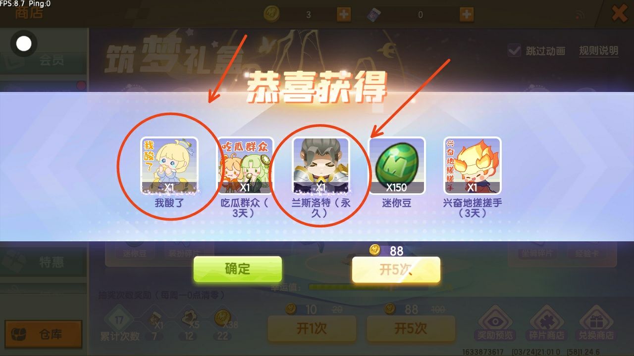 连续抽5次。必中!