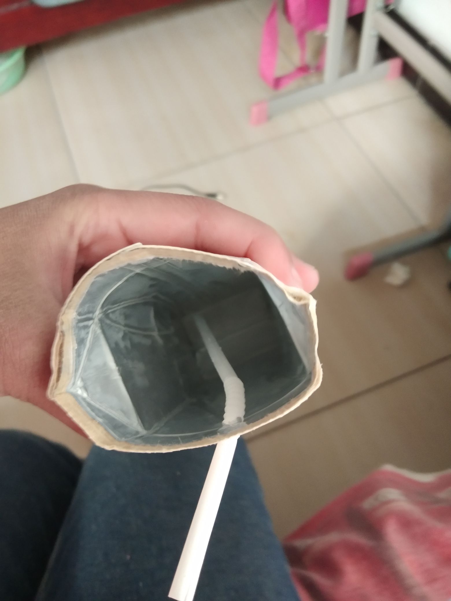 我直接把喝完的牛奶壳给踩爆了那声音和放炮一样大