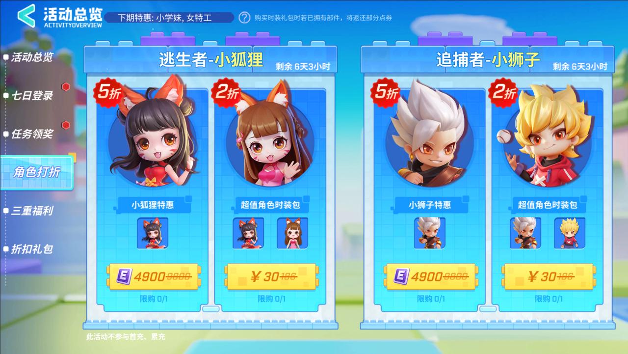 另外,少年们需注意活动期间内,会定期更换特惠出售的角色,有心仪角色特惠出售的话请注意不要错过了~