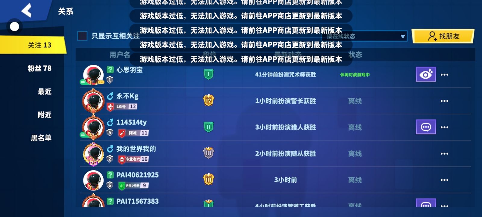 明明233乐园是最新版本的,可是游戏为什么不是!呜呜呜导致我只能自己一人玩