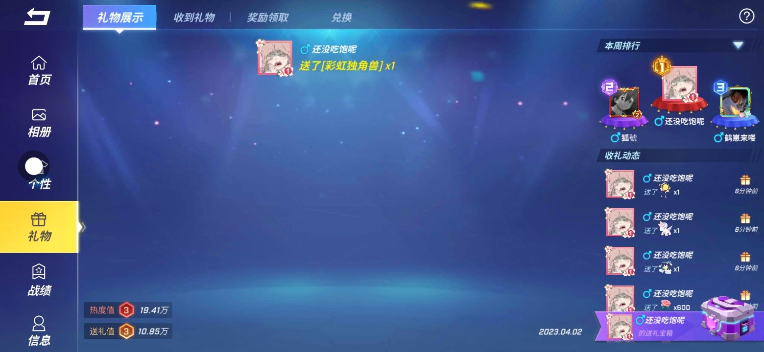 谁能给我一点点礼物,马上20万了,谁给礼物我带他一起上上分