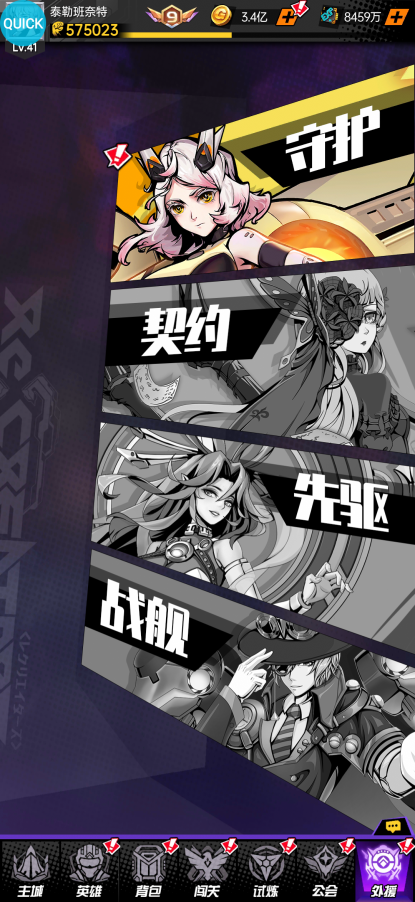 我们可以看到画面下方的标签栏,分别是主城、英雄、背包、闯关、试炼、公会、外援。下面我来给大家分别介绍。