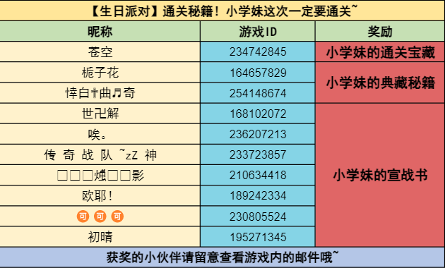生日通关赛来咯~这次一定要通关!小学妹将抽取认真完成任务的少年送出钻石礼包噢!