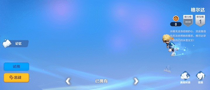 格尔达向前方释放一个巨大的高密冰晶,冰晶碰到对手或障碍物后自动碎裂,冻结周围6.5米内的所有对手1.4秒,造成300点伤害,并在冻结状态结束2秒内,降低其移动速度。