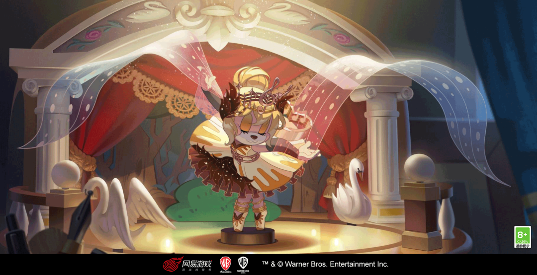 苏蕊·轻舞乐章的技能特效风格以八音盒上的芭蕾少女为理念进行设计,凸显皮肤主题的特点:八音盒、古典芭蕾少女、复古唱片机。