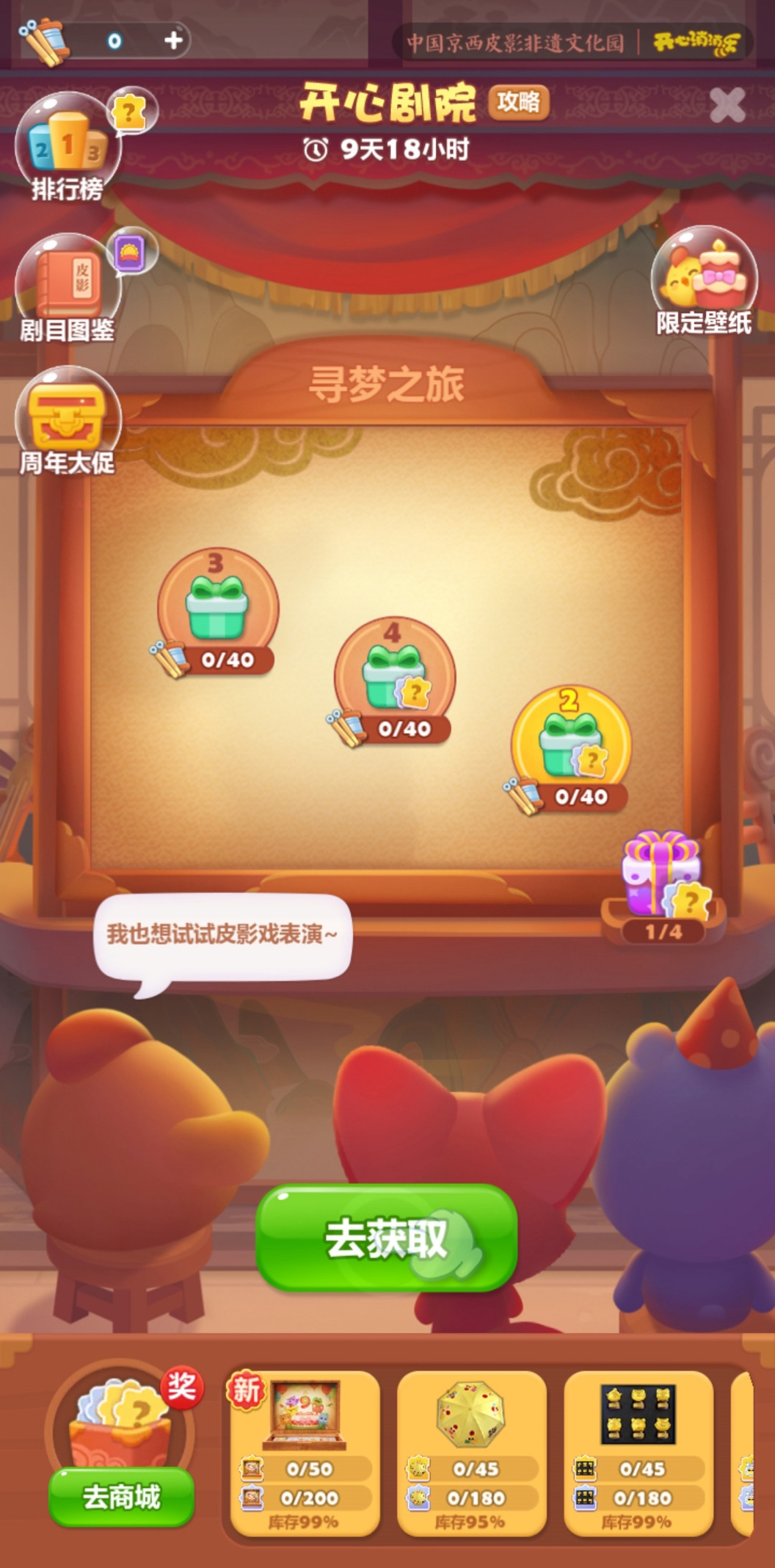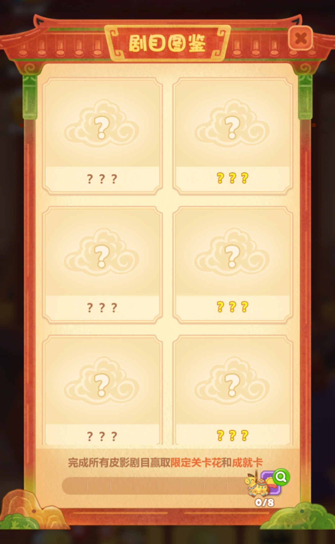 ②解锁全部剧目图鉴可获得:皮影骆驼关卡花