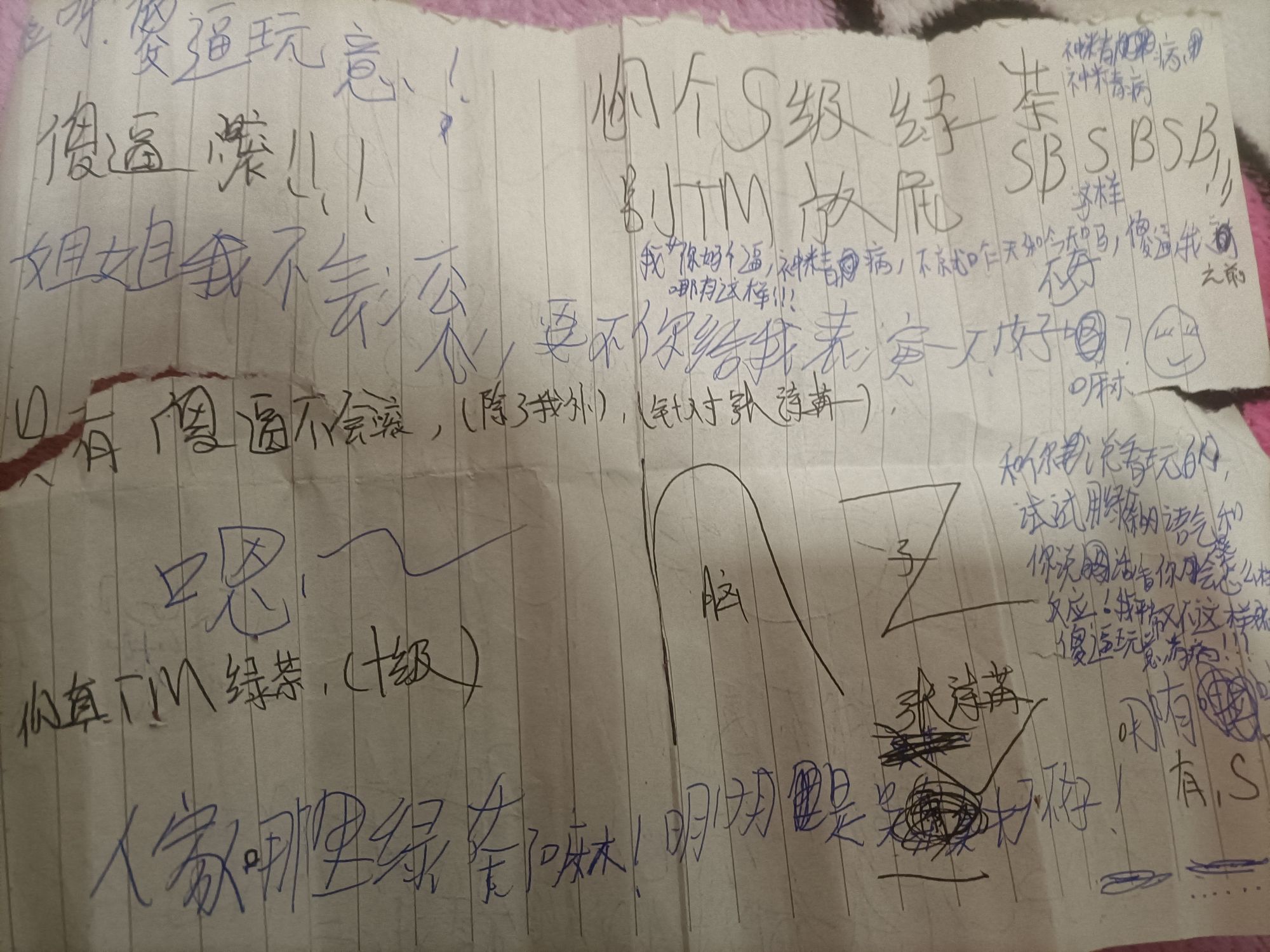 只不过是用绿茶的语气和闺蜜说话,为啥要骂我呢?蓝笔是我写的,黑笔是我闺蜜写的