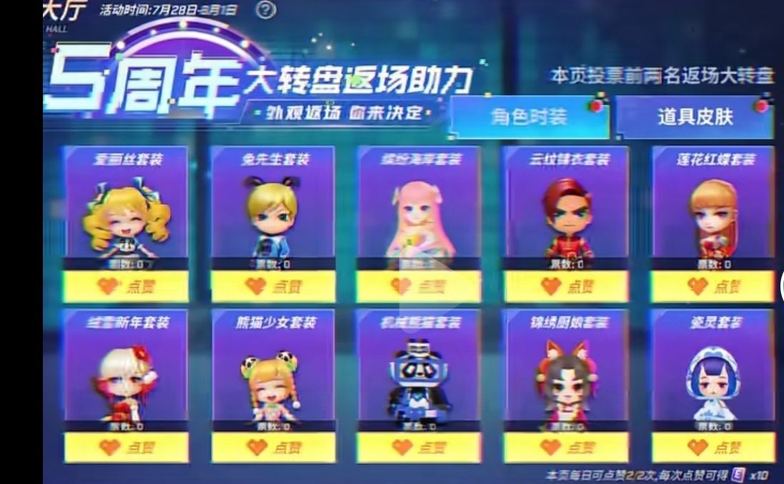 五周年大转盘反场皮肤确定!你最喜欢那个呢?