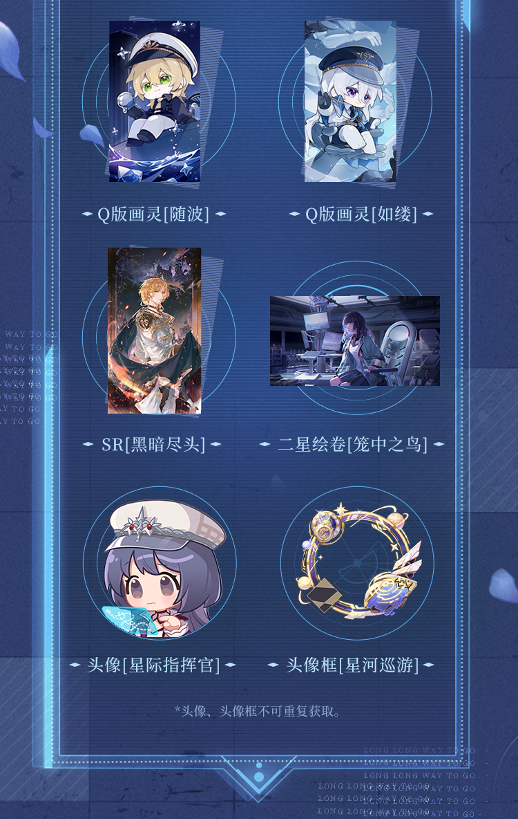 3. 参与灵体副本获取材料,可在[星域交易所]换取[活动限定Q版画灵];达成[旅途成就],可获得SR画灵[黑暗尽头]、限定头像框、2星绘卷等道具