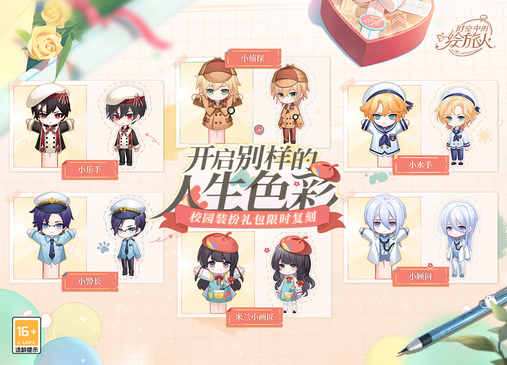 ※ 重复获取男主装扮或手偶时将转换为[纽扣],重复获取玩家自己的[米兰小画匠]校园装扮和手偶时将转换为[钻石]×280。